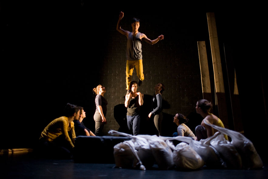 Loaded combines an evocative original soundscape with texts ranging from ancient literature to modern science. Its eight performers use planks, sandbags as well as each other to explore how bodies and structures learn to bear loads – or fall apart. Violent, lyrical and funny, Loaded is a startling new show about the mechanics of weight and what happens when we face the limits of our strength.